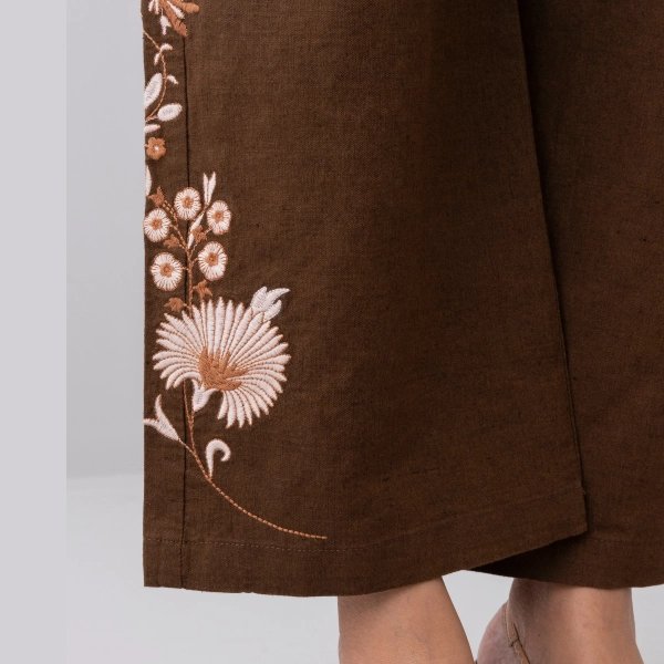 The wide-leg silhouette provides ease of movement and a flattering drape, while the intricate embroidery adds a refined, ethnic-inspired charm. Perfect for pairing with kurtis, tops, or ethnic sets, these pants are versatile enough for both casual outings and festive occasions.