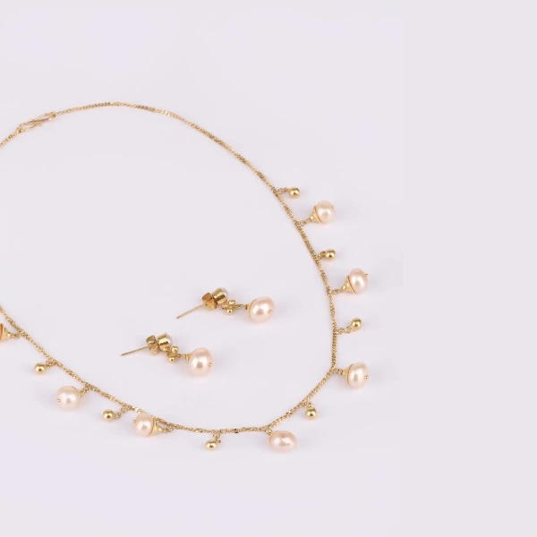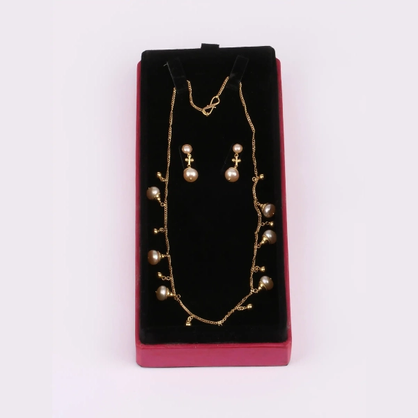 Add a touch of elegance and timeless charm to your look with this beautifully crafted Pearl Studded Gold Necklace Set. Designed with a graceful combination of radiant gold finish and delicate pearl accents, this set enhances your overall appearance with a refined and luxurious feel.